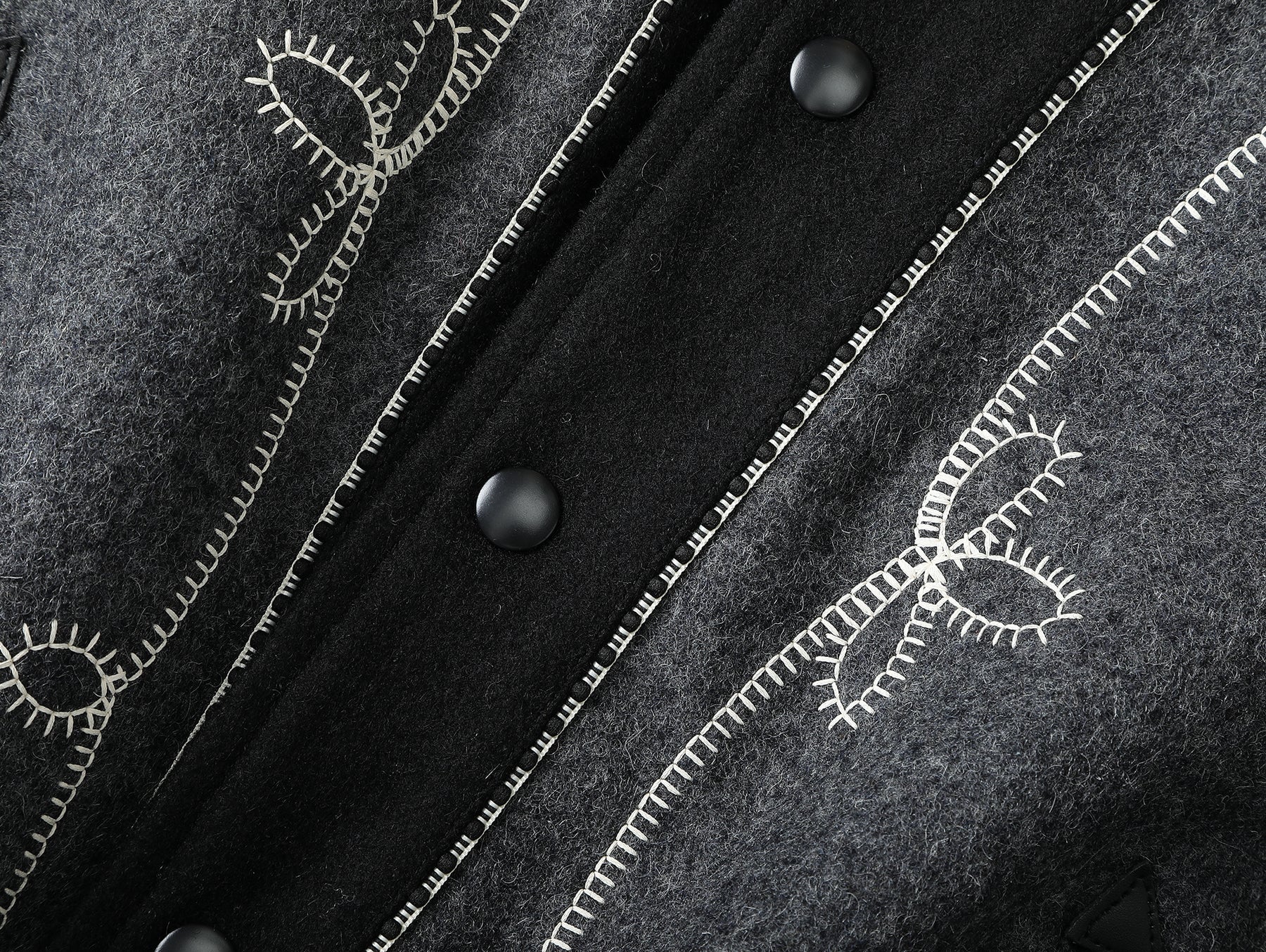The inspiration for this short jacket is believed to come from the embroidered short jackets (Traje de Luces) worn by Spanish bullfighters, whose sleek and ornate style it closely mirrors.