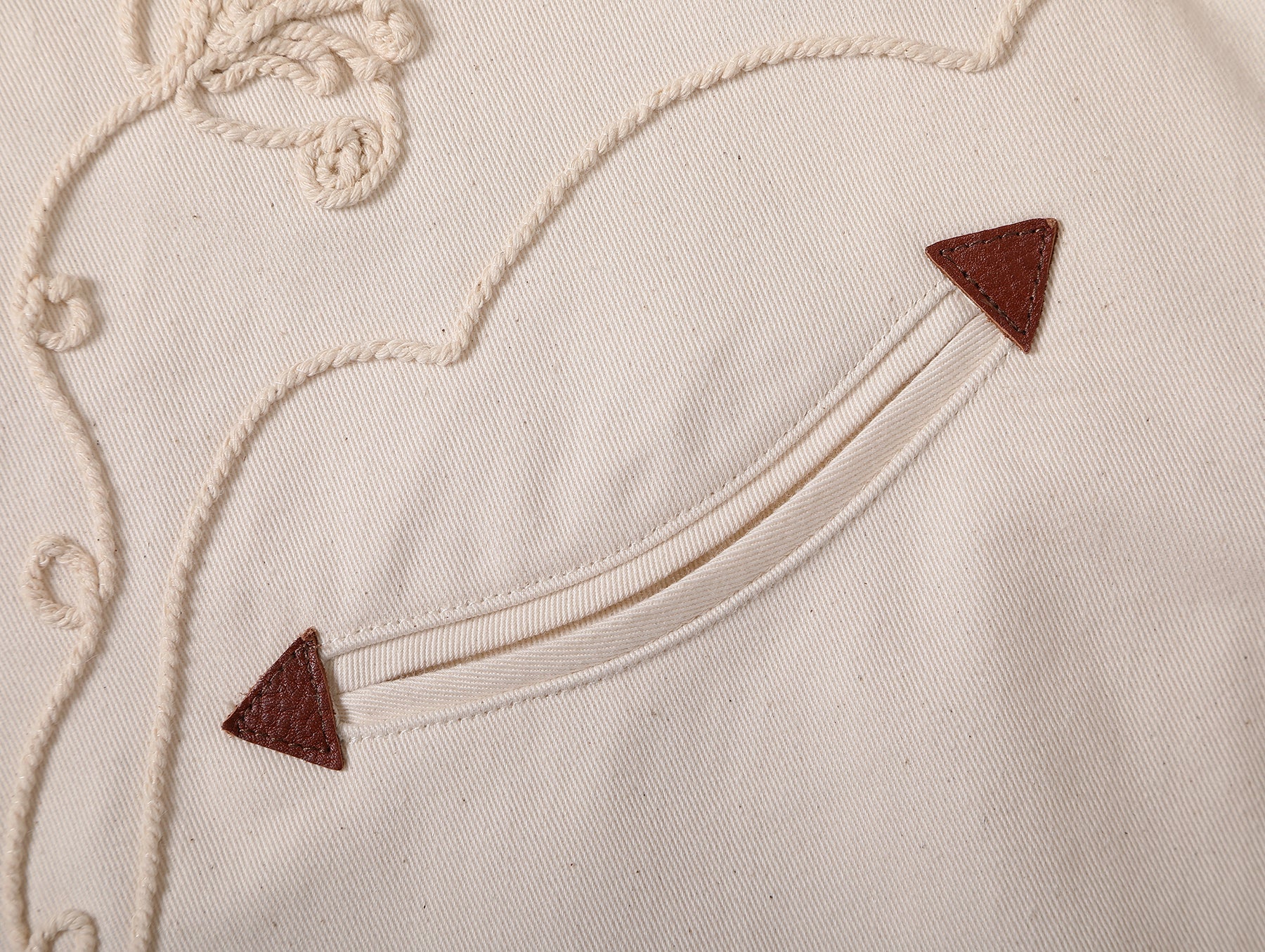 The fabric naturally contains a small amount of cottonseed hull particles, giving it a natural and rustic feel. Embroidered in matching color schemes, the collision of different textures adds more layers and depth.