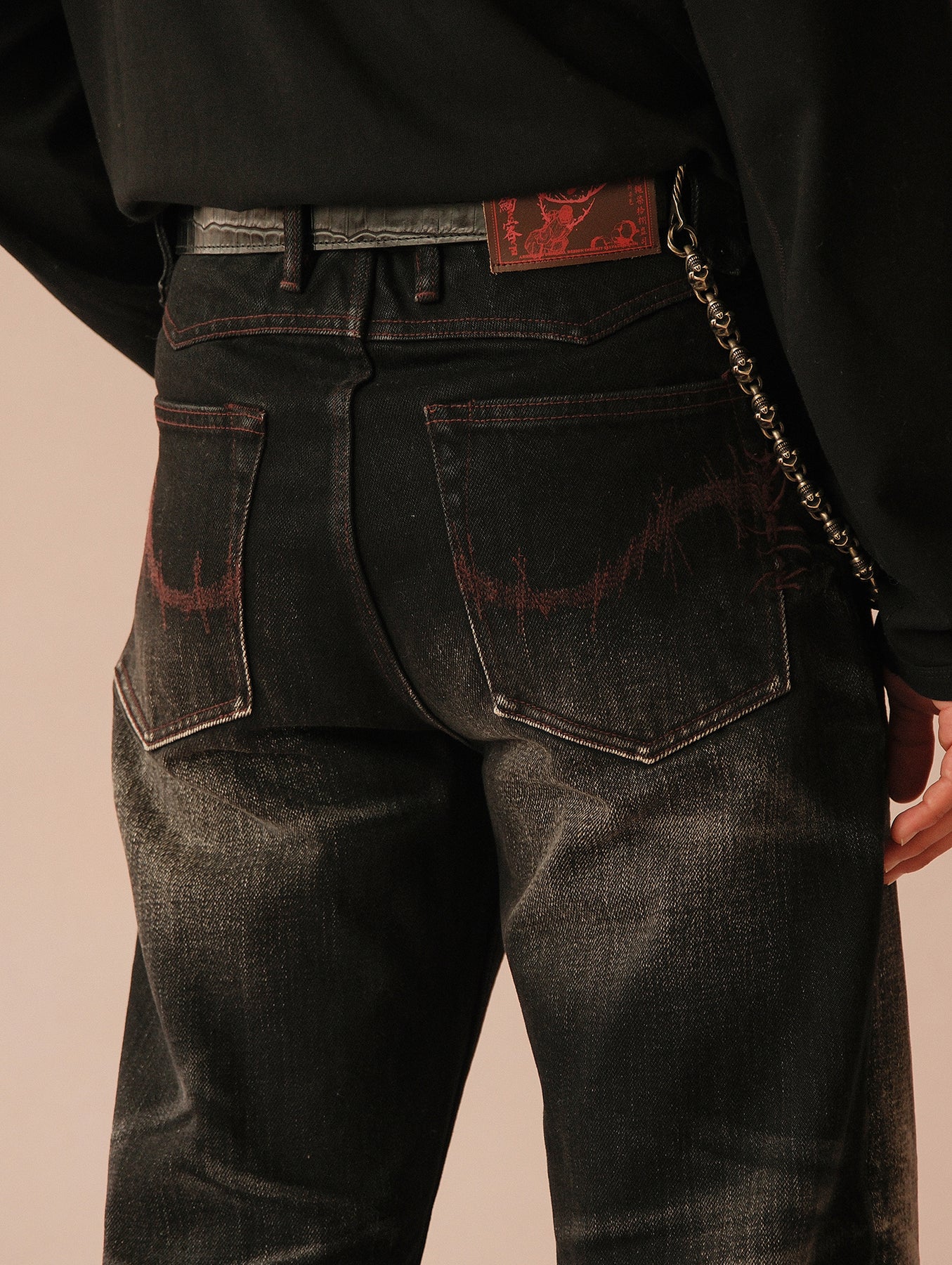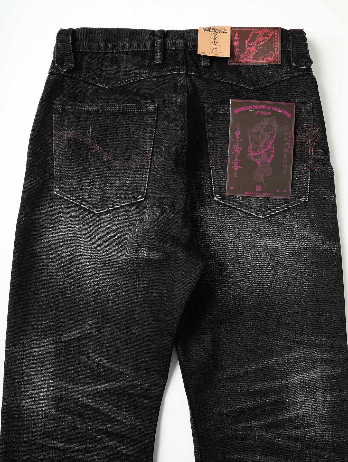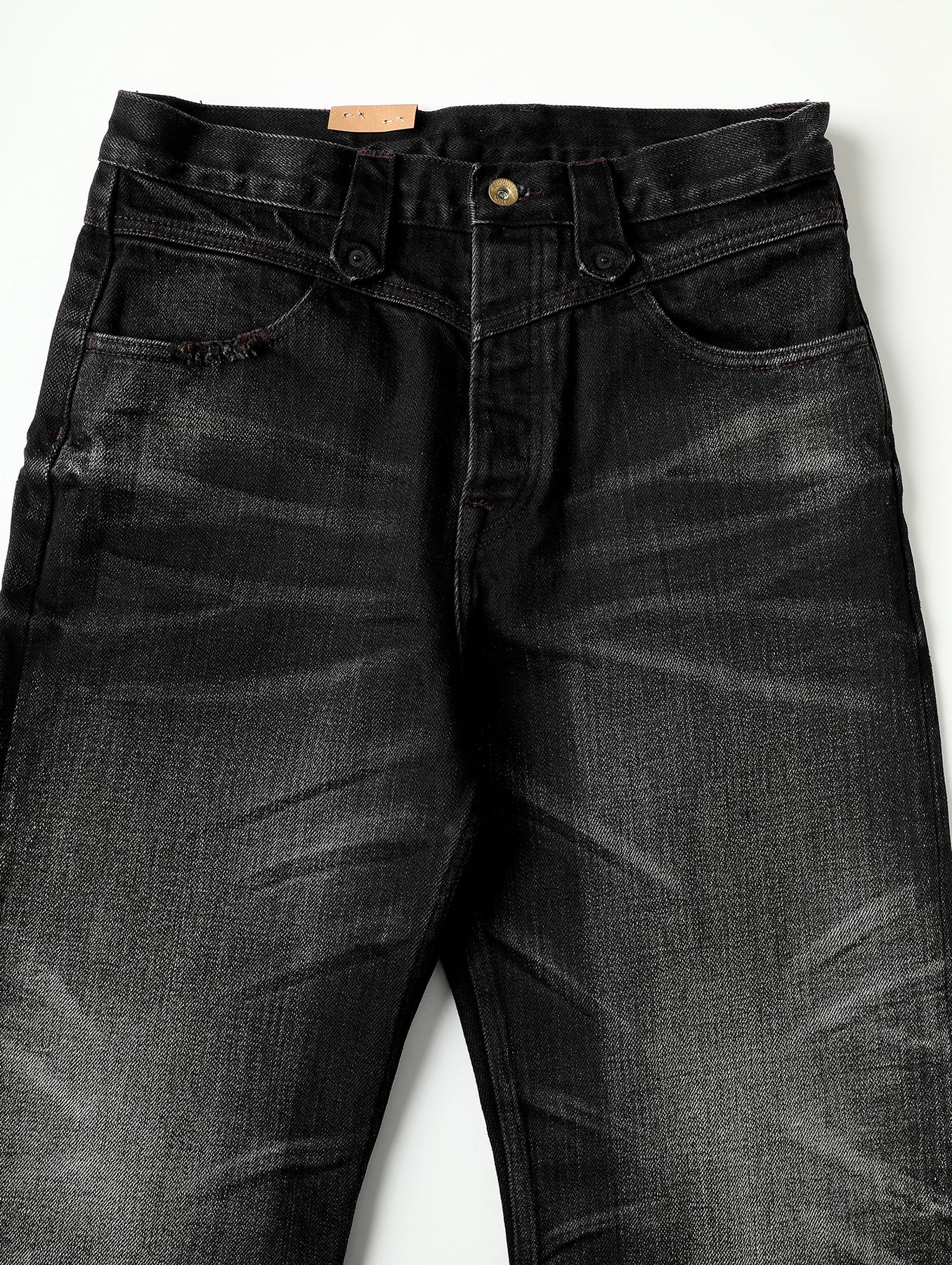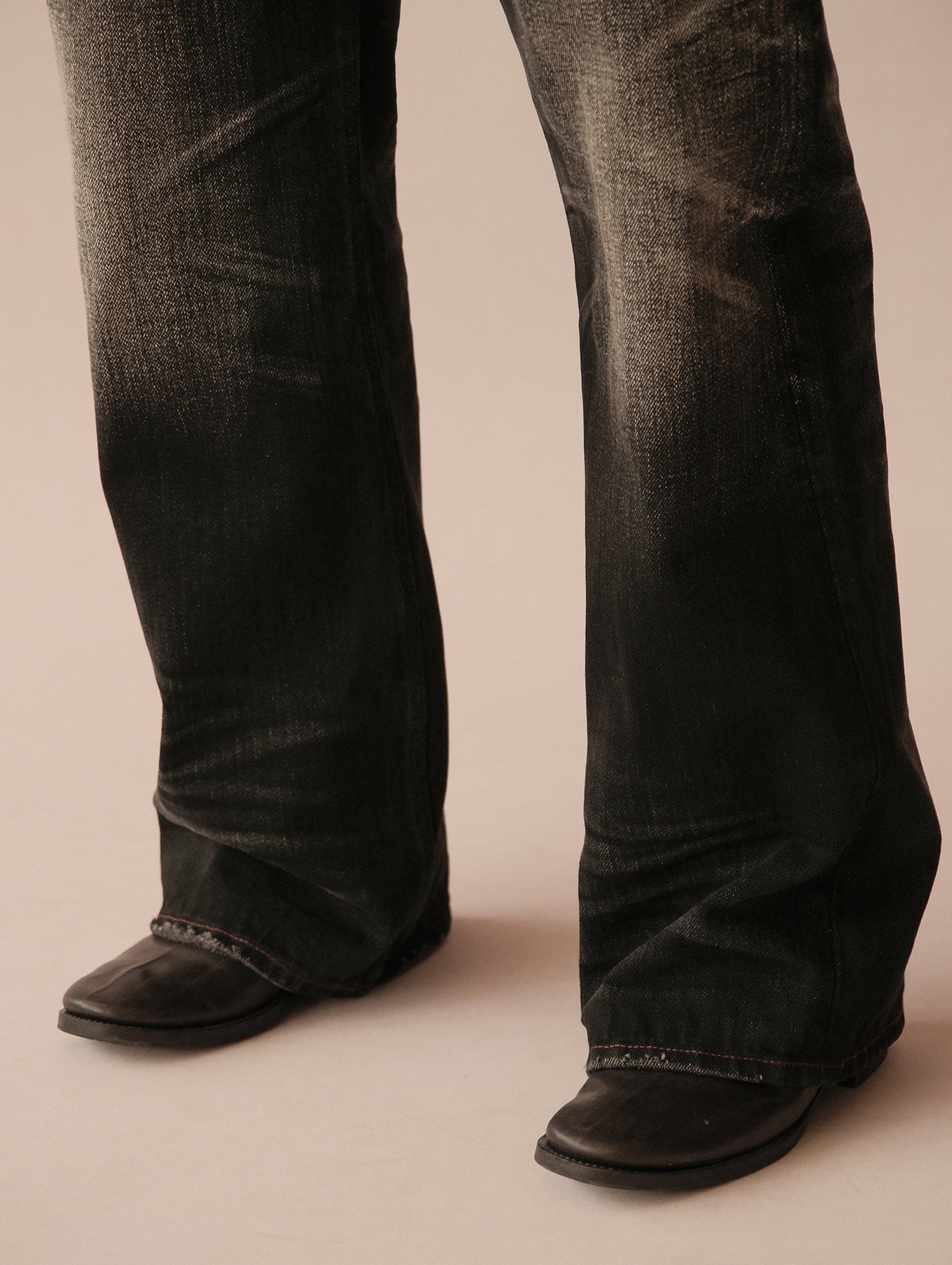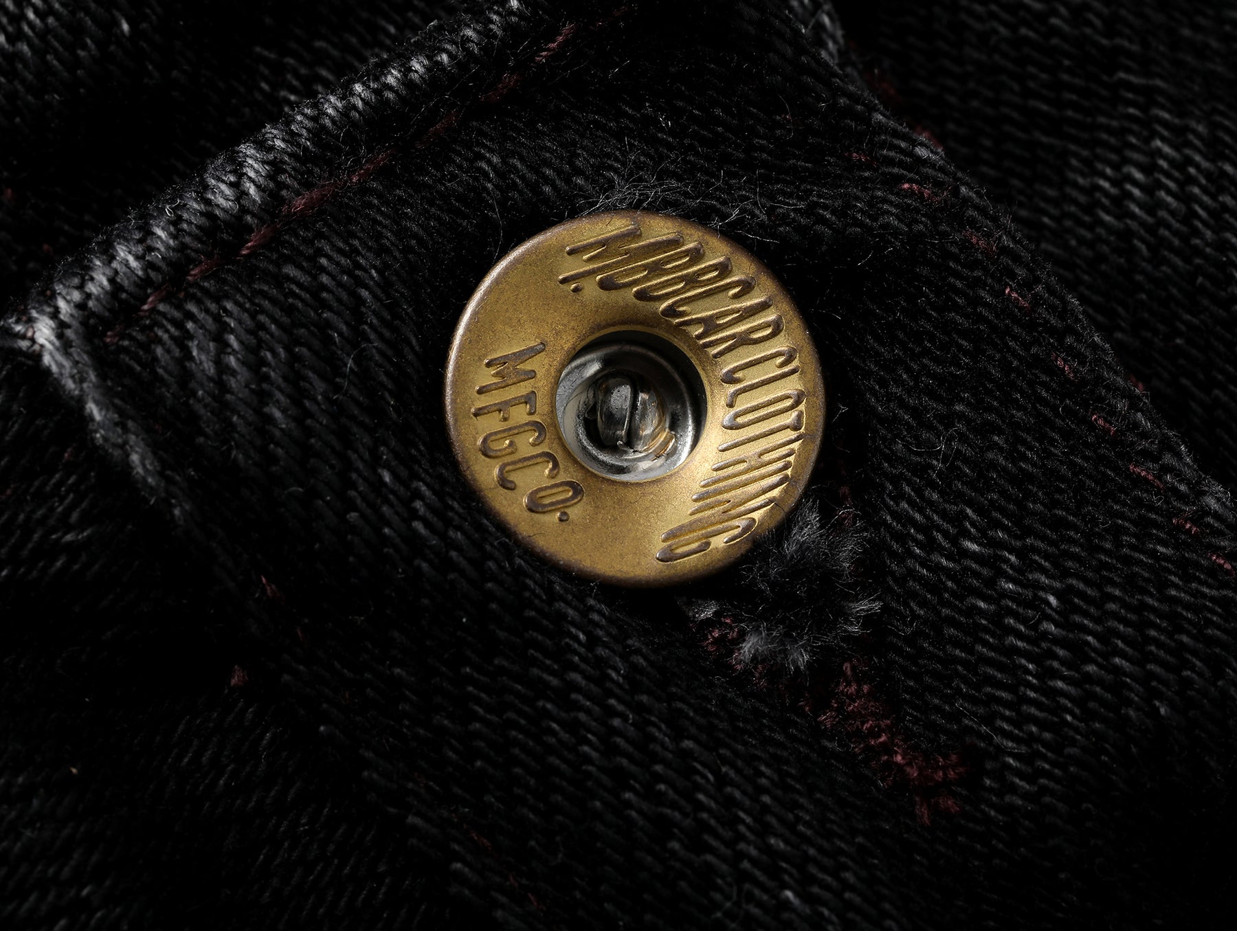 This jean wash features a unique color palette that sets it apart from most black denim on the market. The cross-dyed black denim results in softer and more even fading over time.