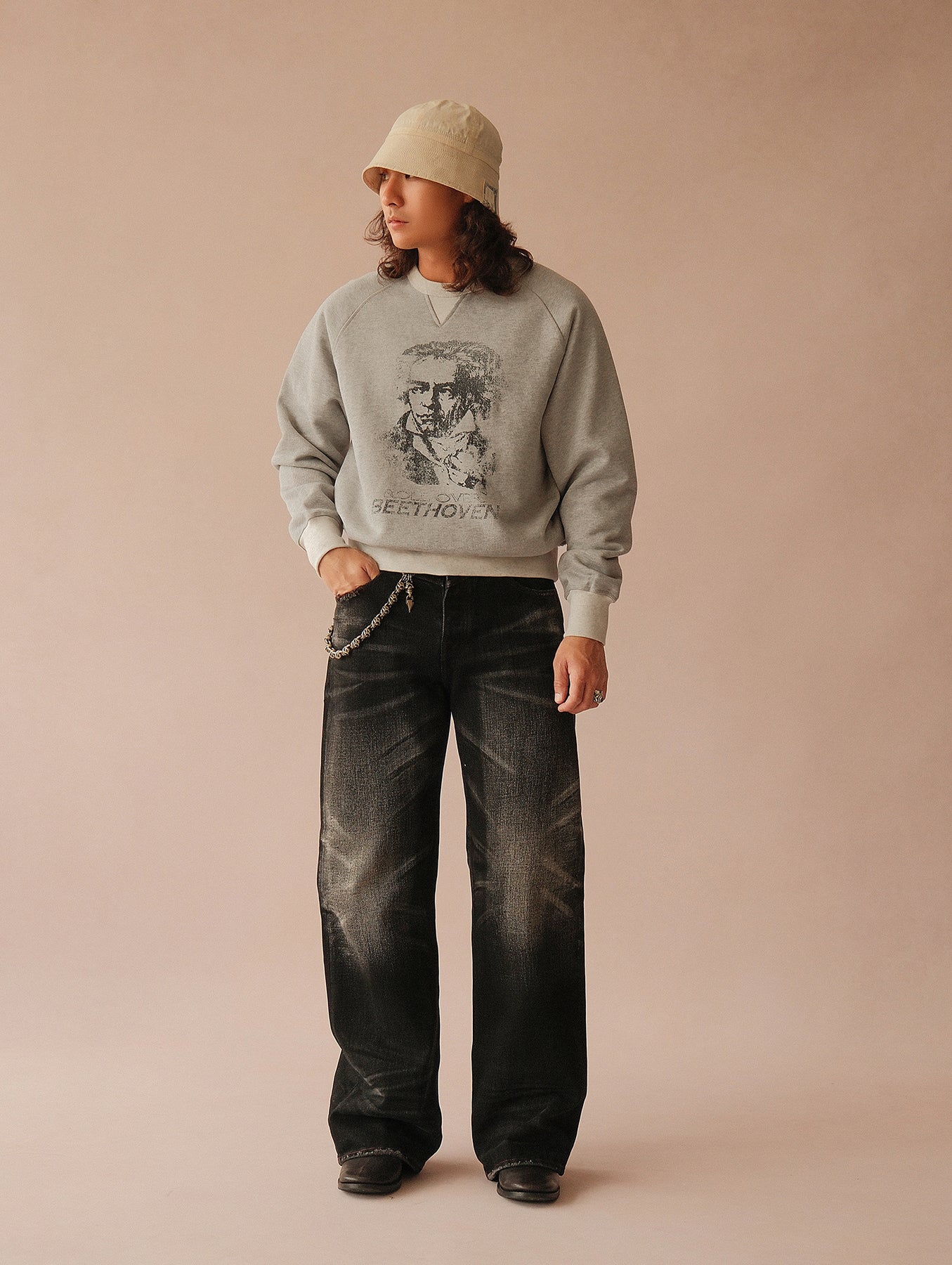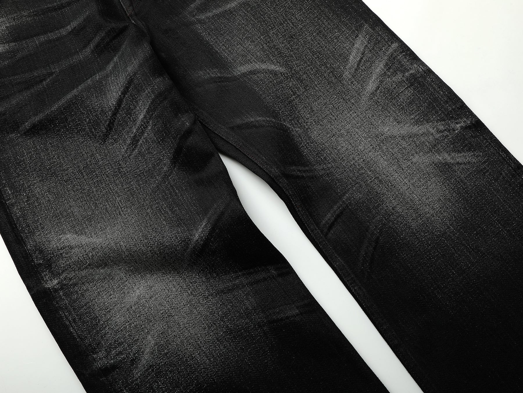 Compared to high-contrast or lightly washed black denims, the deep black tone and subtle gray undertones deliver a more refined and premium texture.