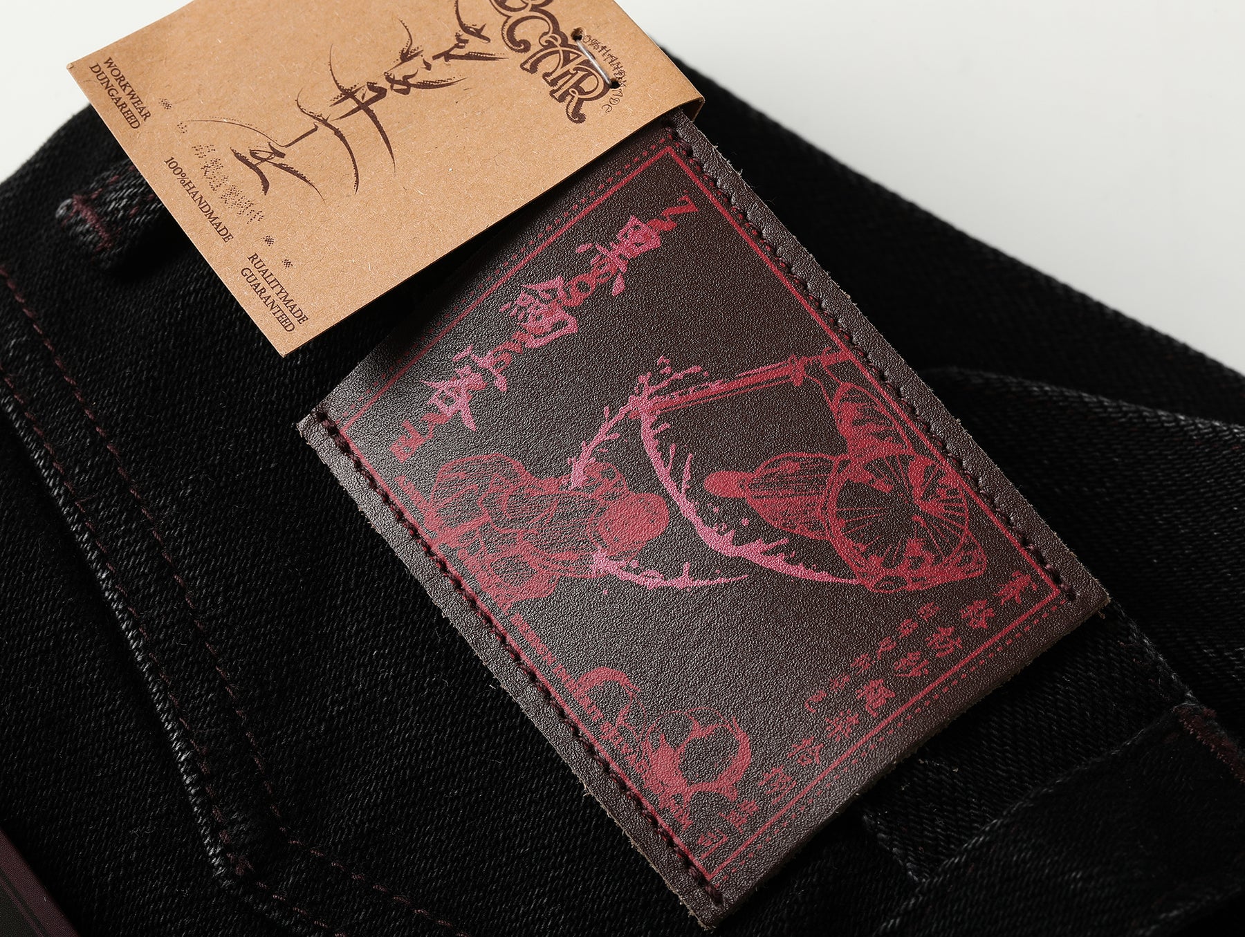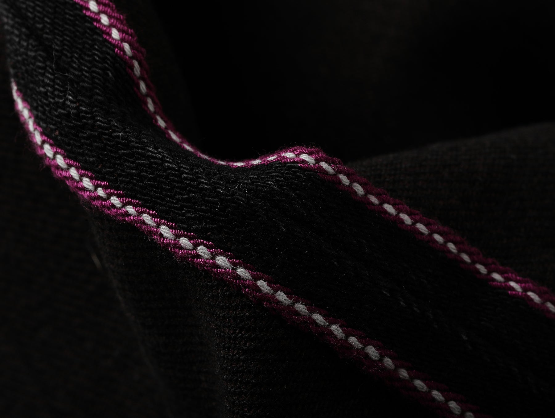 When rolling up the trouser legs,the faintly reddish-brown color and eye-catching purple selvedge edges can be revealed.