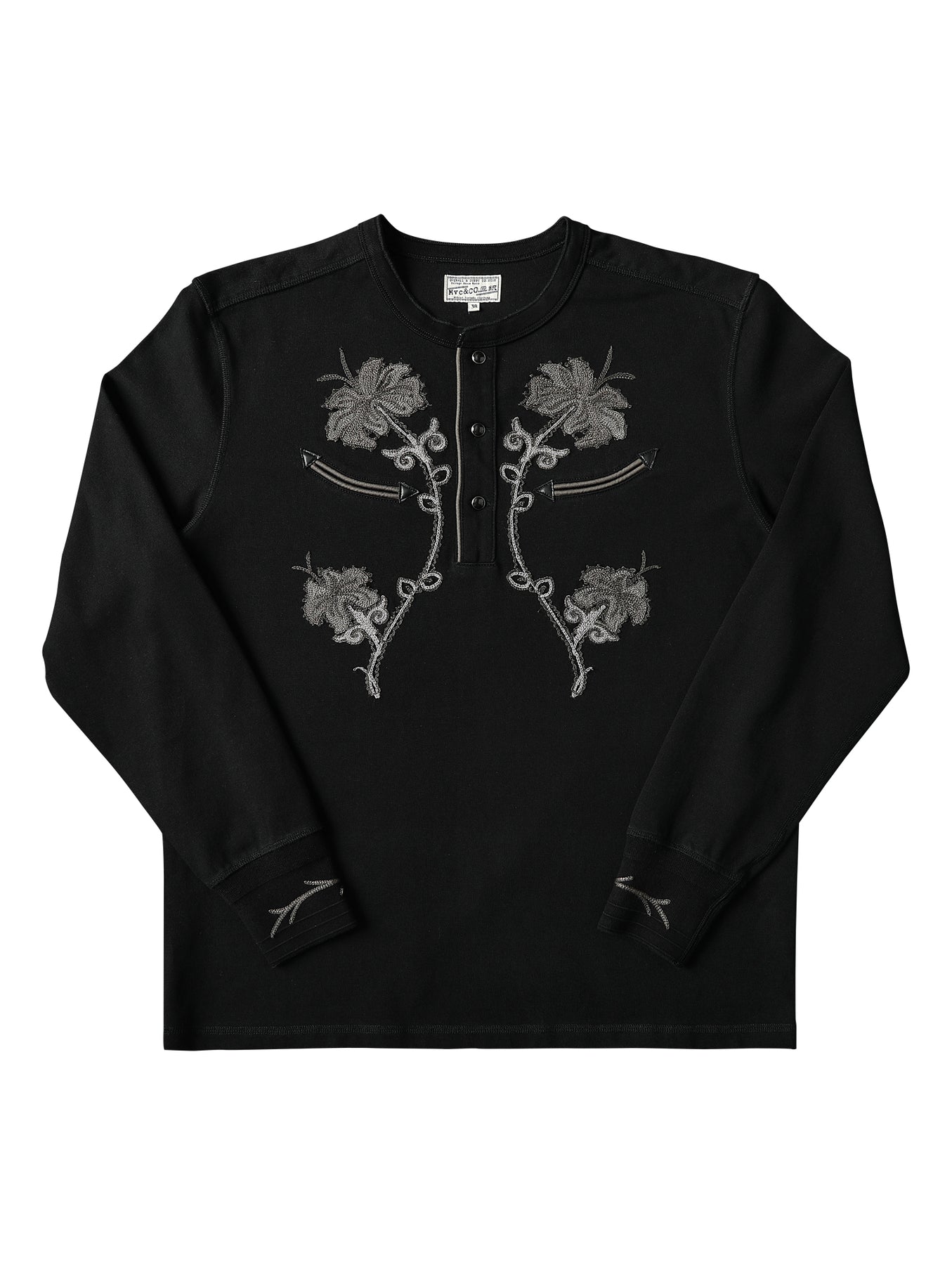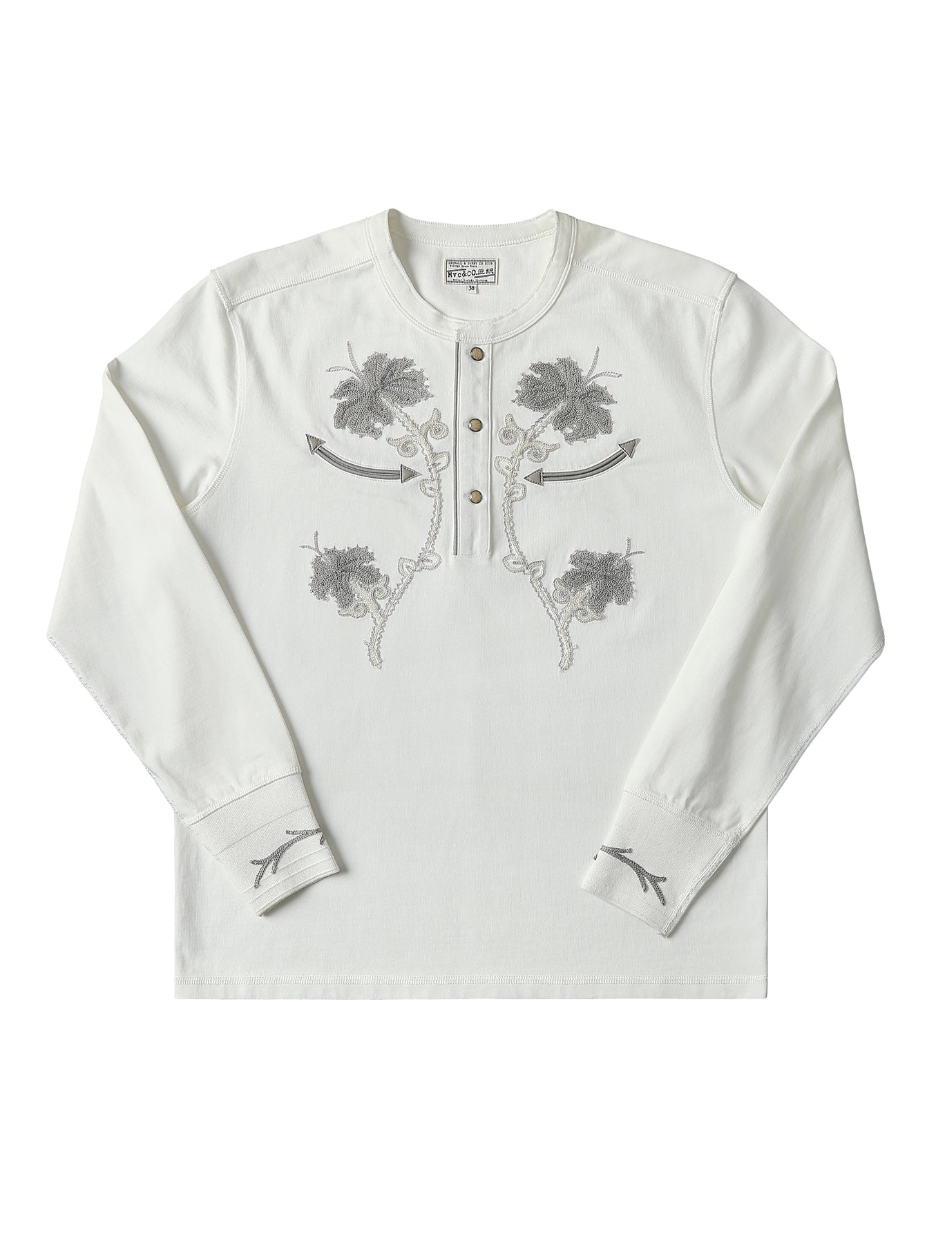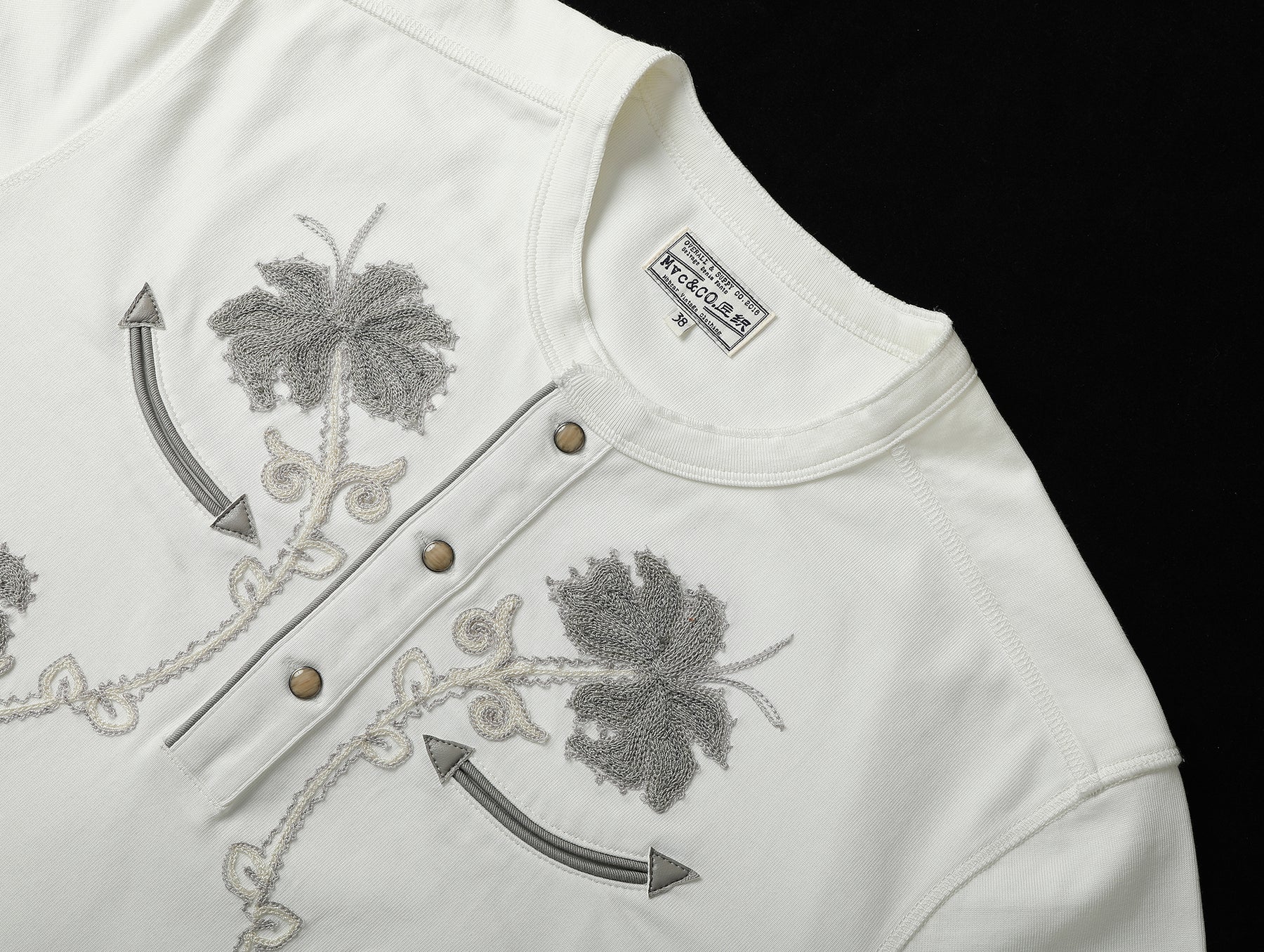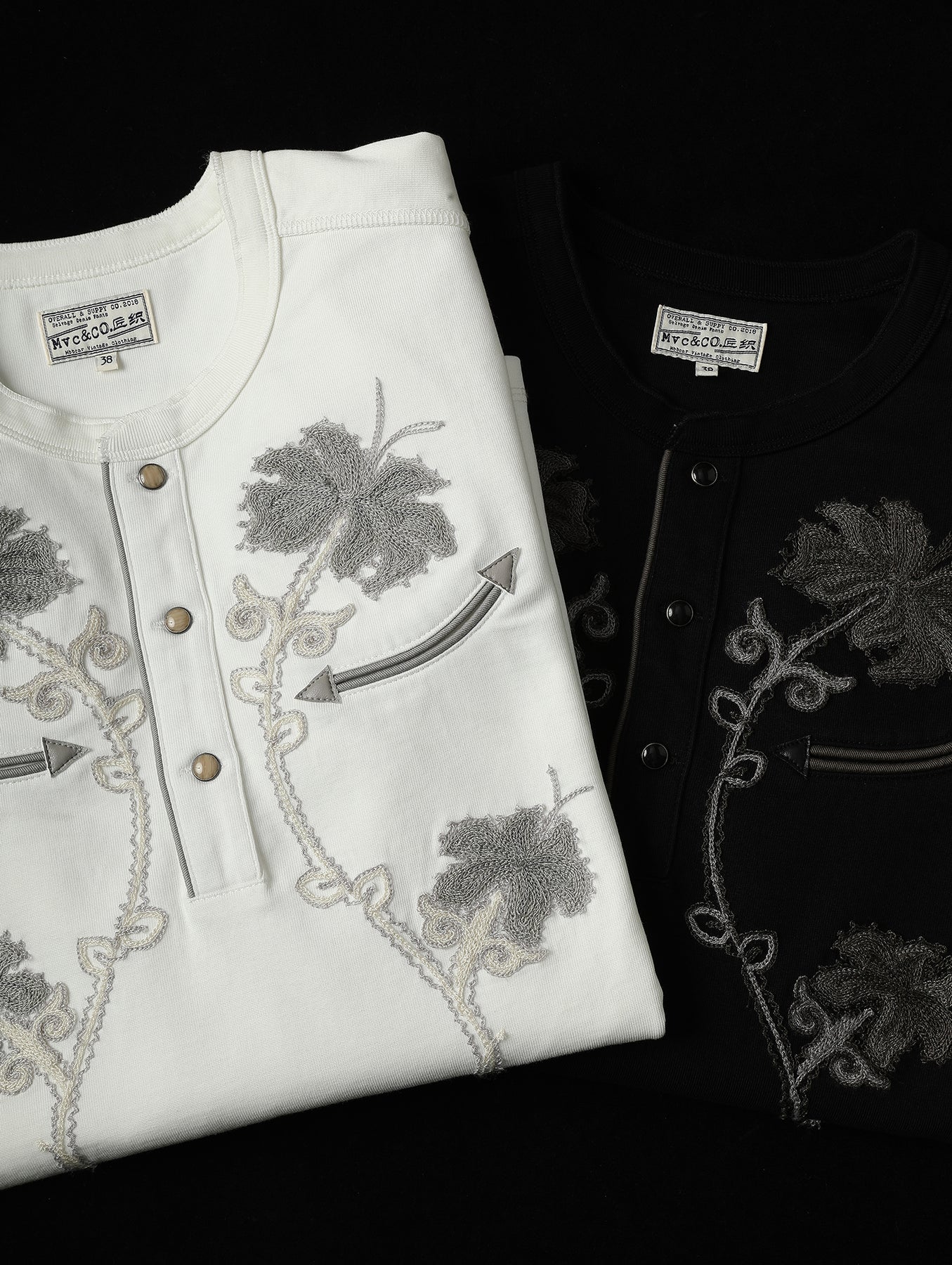The embroidery employs six shades of thread within the same color family, creating rich, subtle dimension where the stitching and base fabric complement each other.