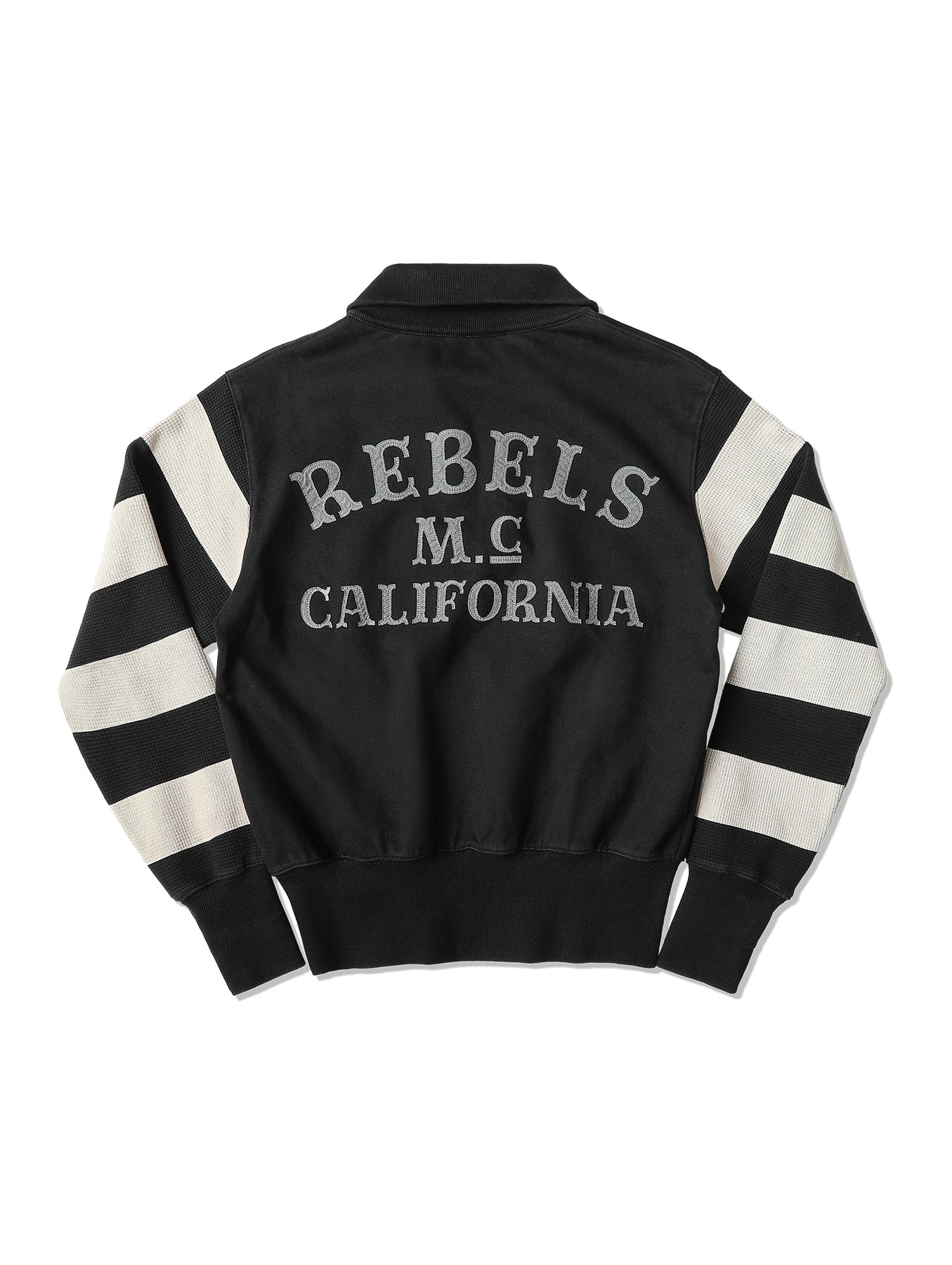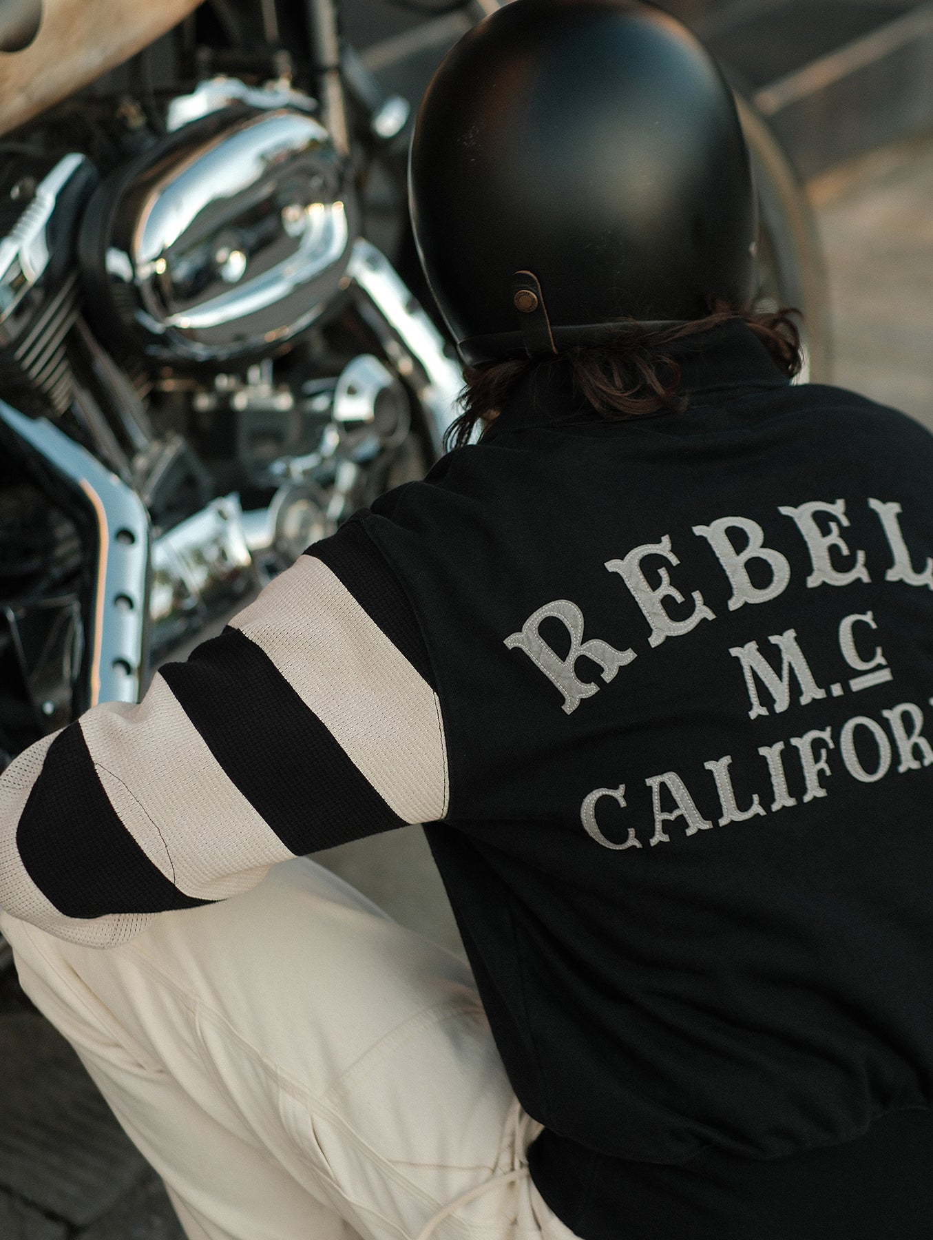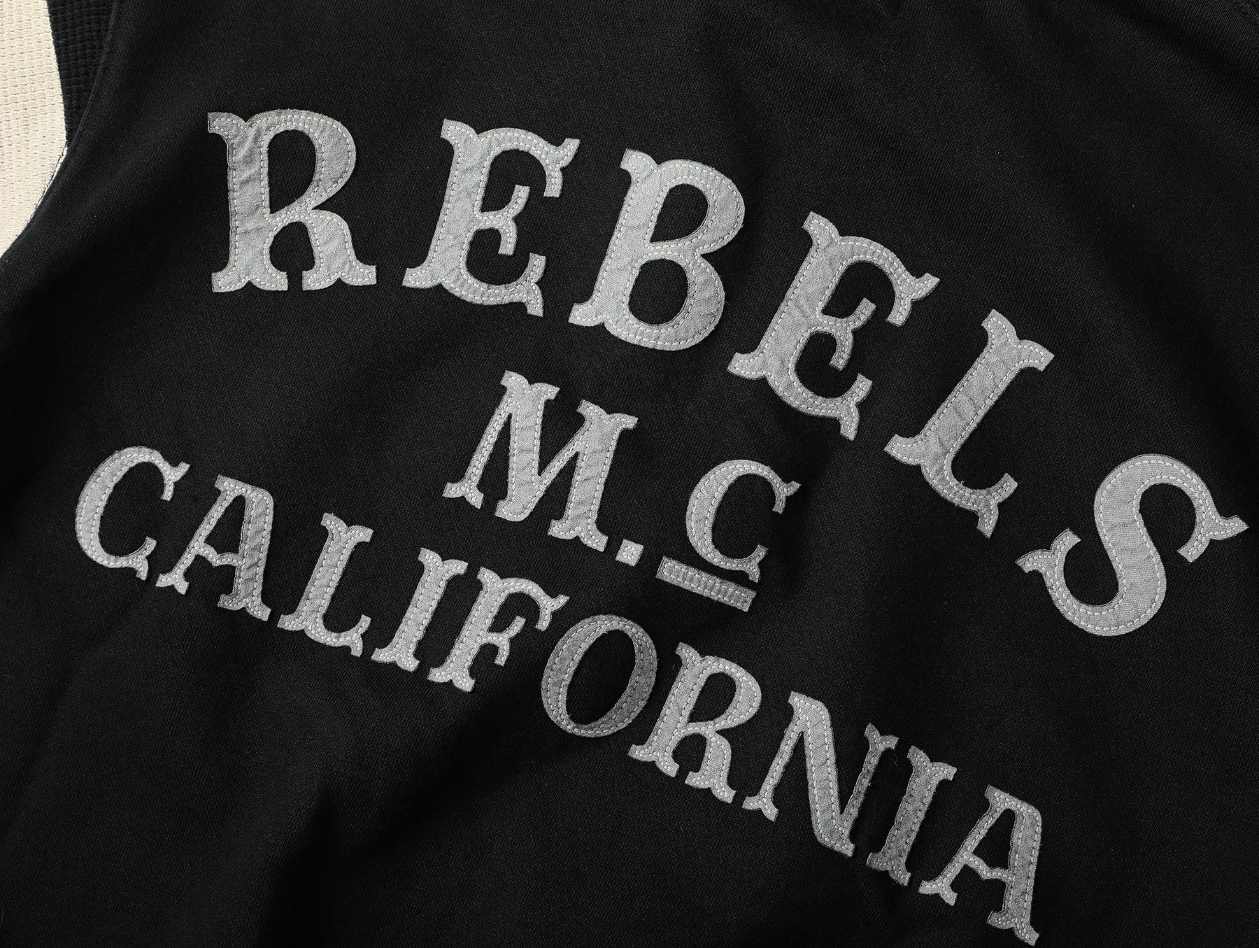 The MBBCAR biker club emblem on the chest is crafted with felt letter applique, staying authentic to the traditional construction of early racing sweatshirts.
