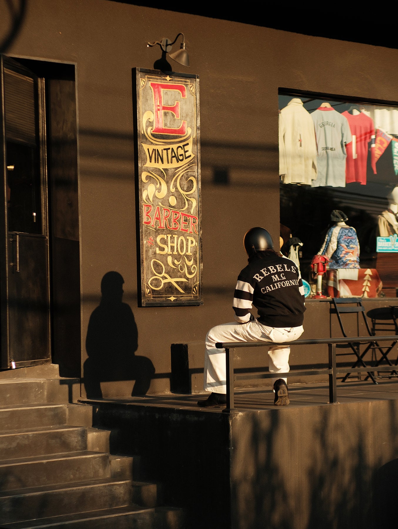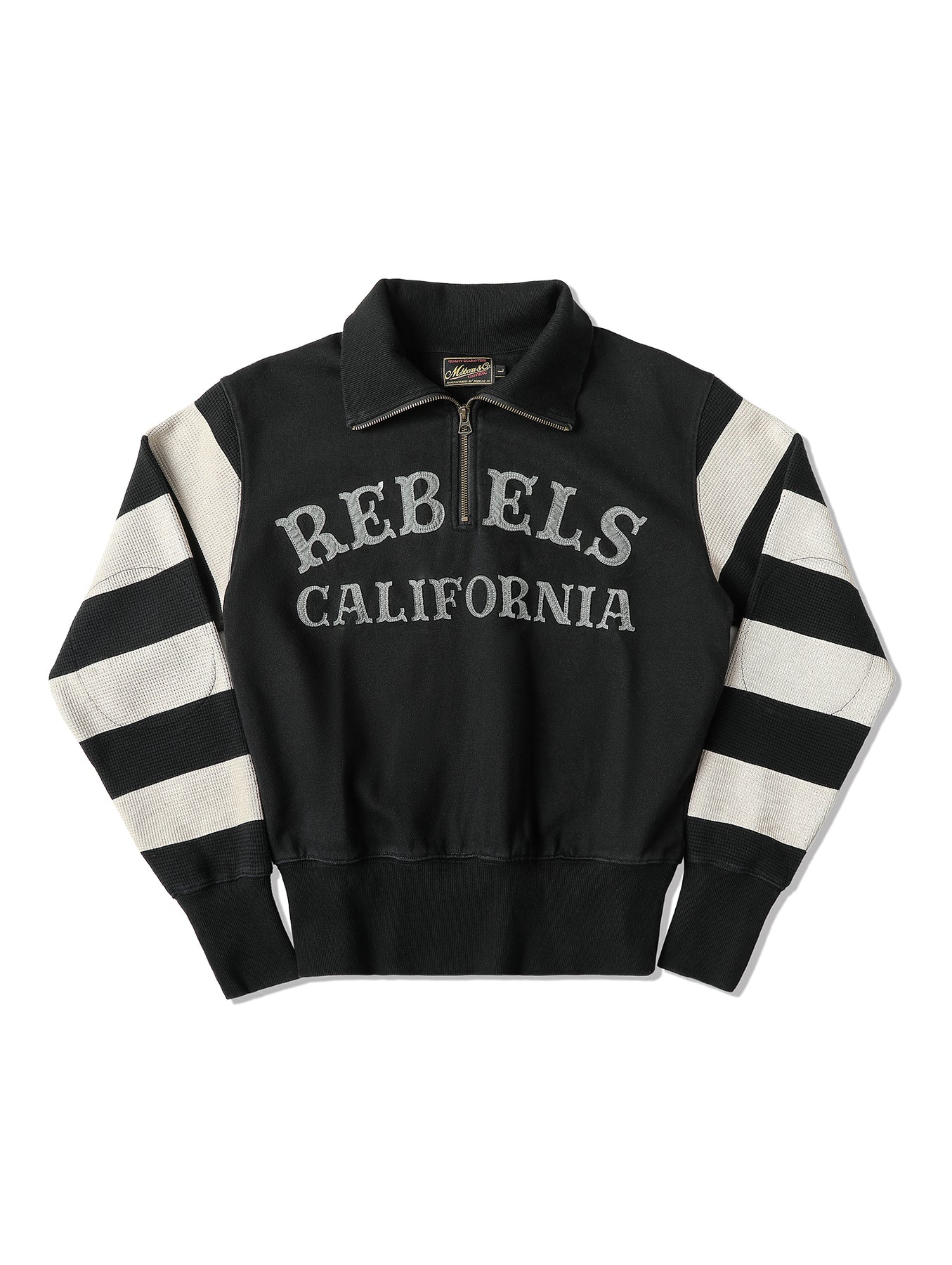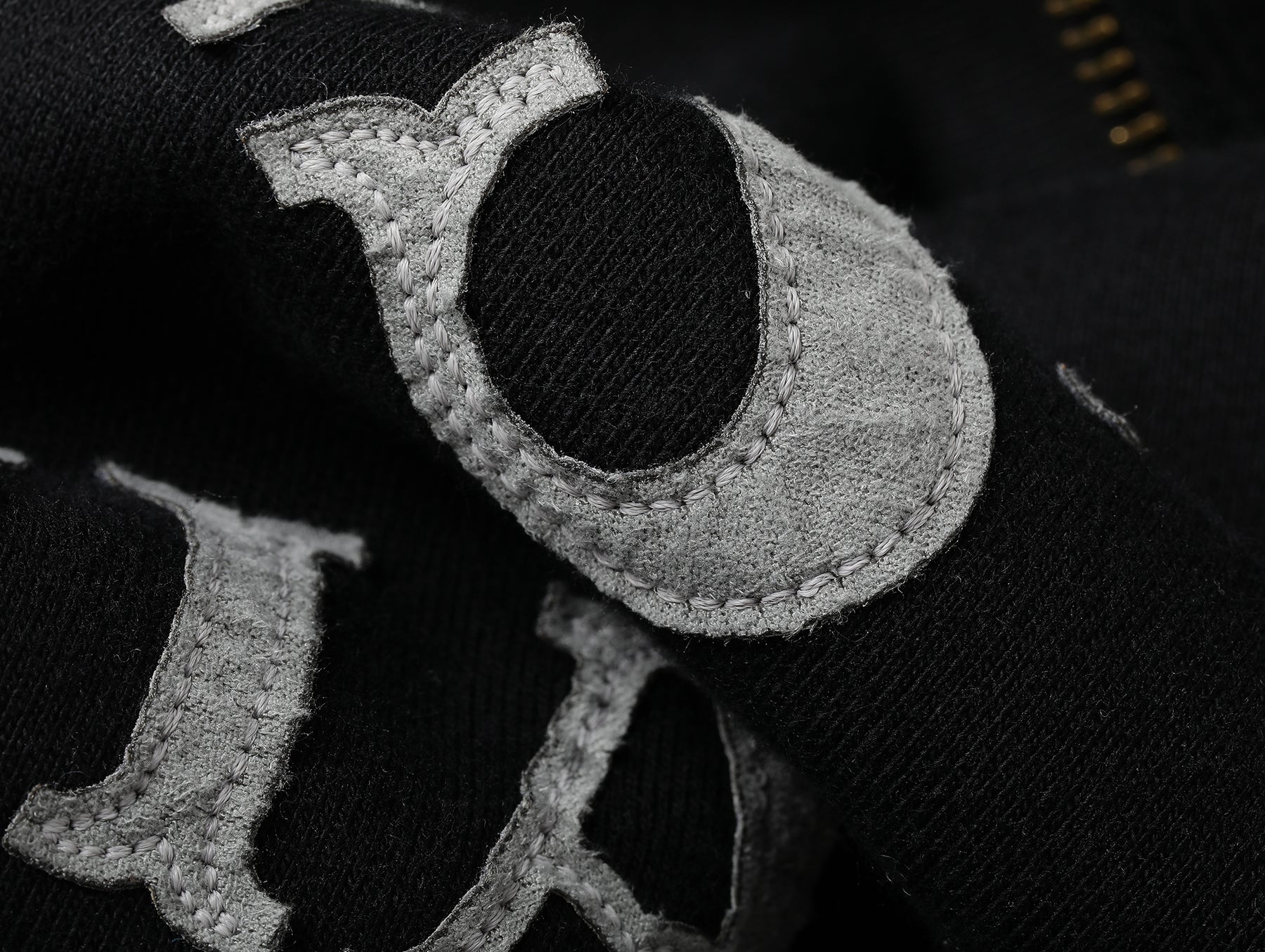 The MBBCAR biker club emblem on the chest is crafted with felt letter applique, staying authentic to the traditional construction of early racing sweatshirts.