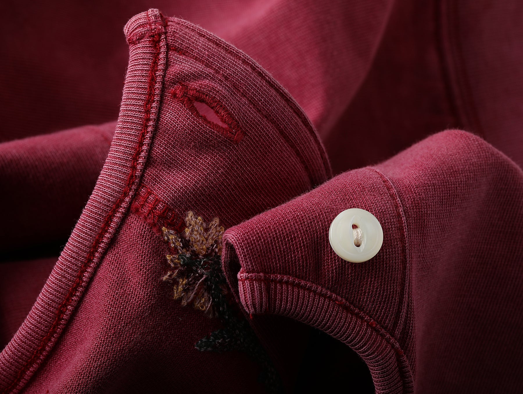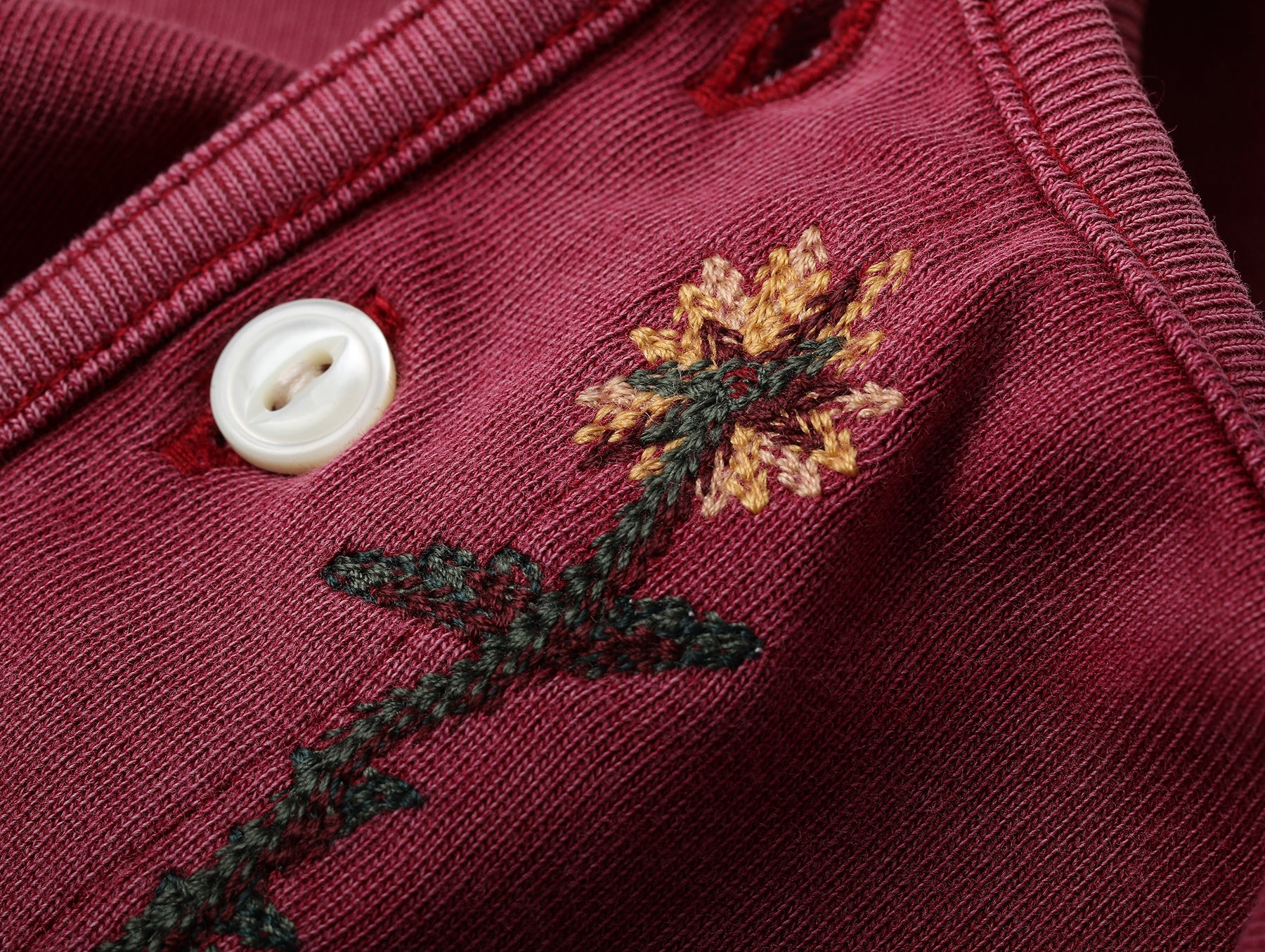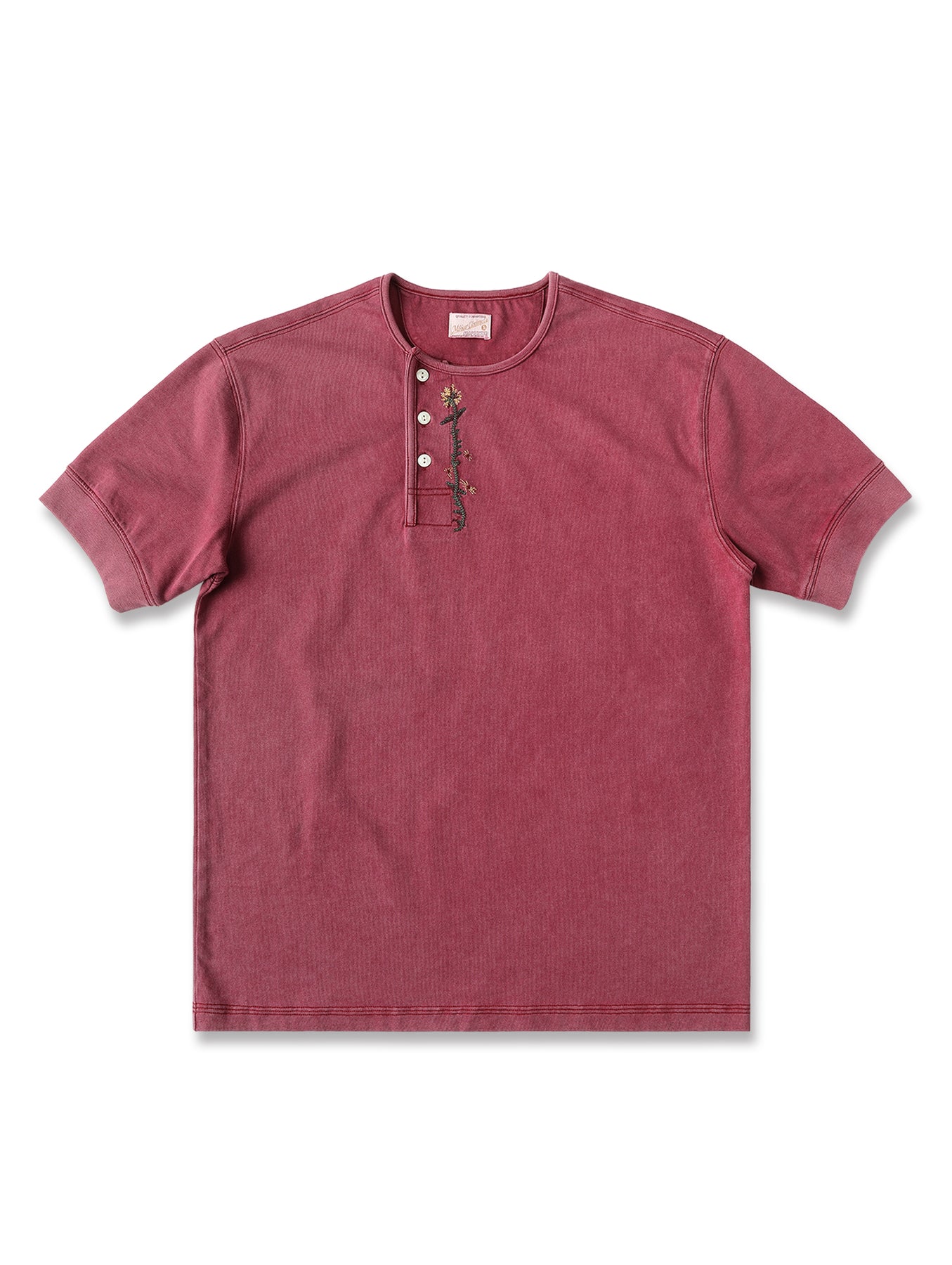 Western Series Floral Embroidered Henley T-shirt-Sun-faded Red