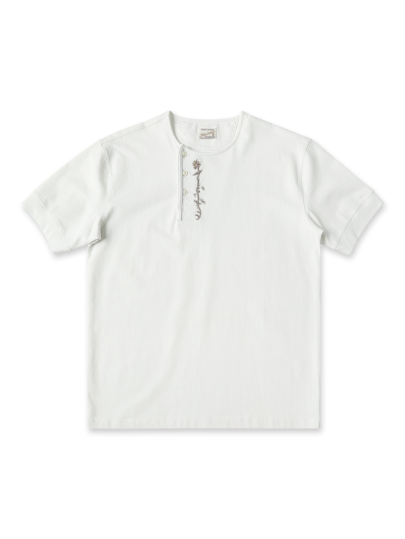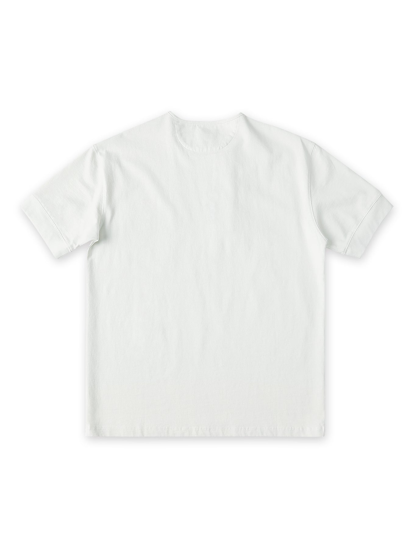 A turtle-neck reinforcement patch is applied at the back collar to strengthen the neckline while discreetly concealing label stitching.