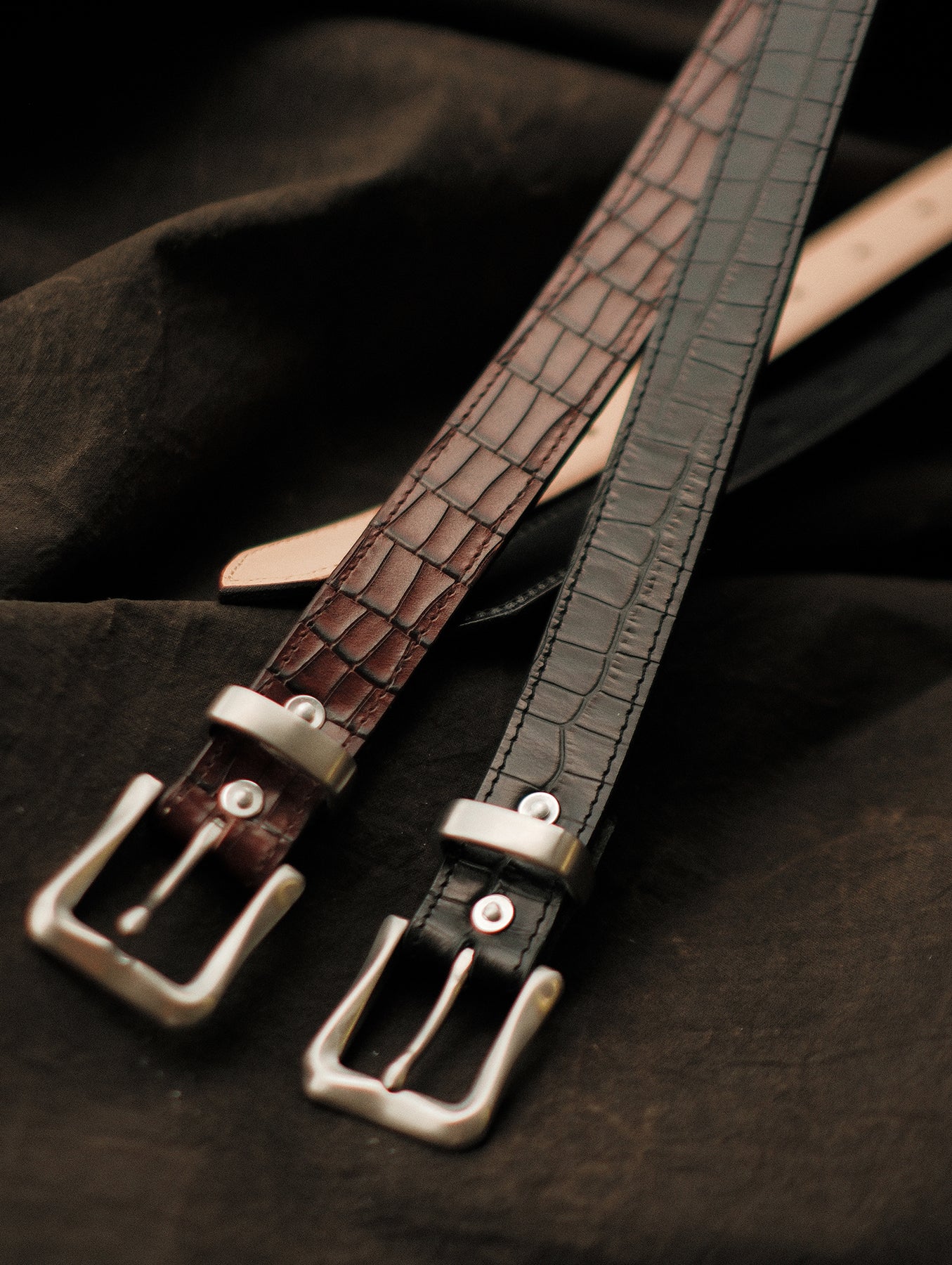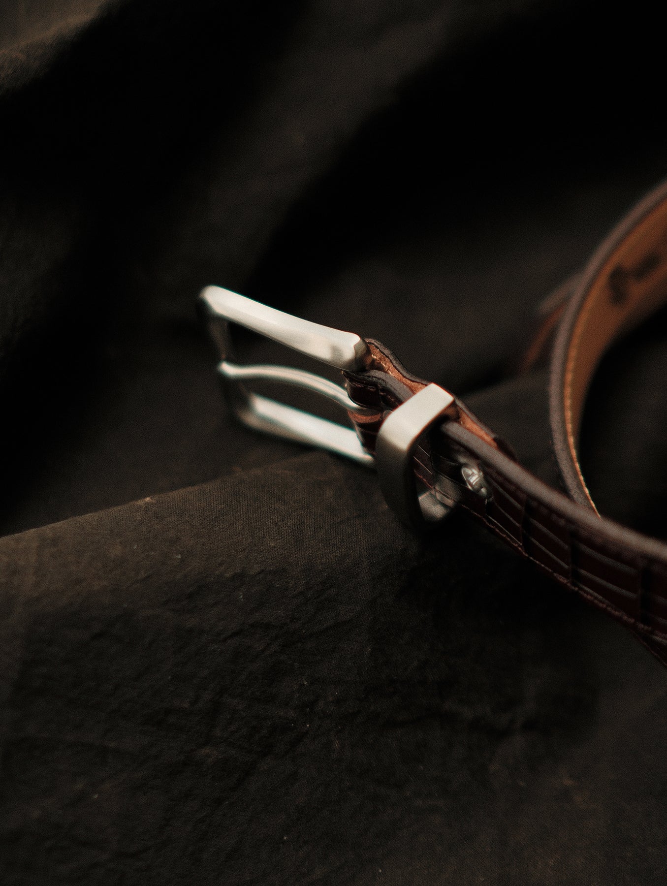 Alligator Bamboo-joint Patterned Embossed Belt-Stainless Steel Buckle-Brown
